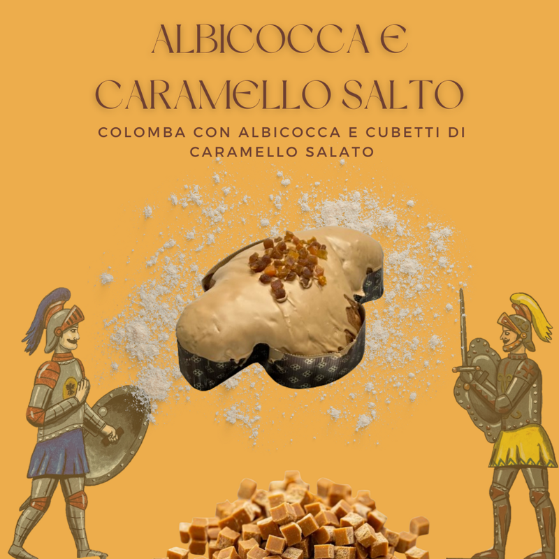 La Colomba con Canditi di Albicocca e Cubetti di Caramello Salato è una proposta originale che unisce tradizione e creatività. L’impasto, soffice e fragrante grazie alla lenta lievitazione naturale, è arricchito da pregiati canditi di albicocca che donano una nota fruttata e delicatamente acidula.